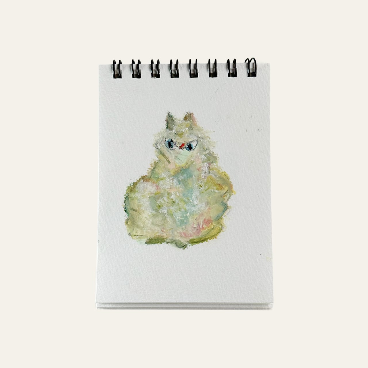 小さなスケッチブックに描いた、手のひらサイズの一点物のねこ。