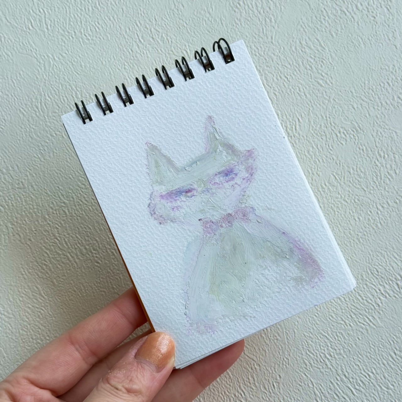 小さなスケッチブックに描いた、手のひらサイズの一点物のねこ。